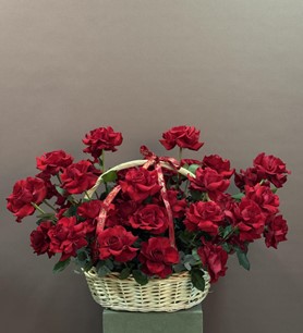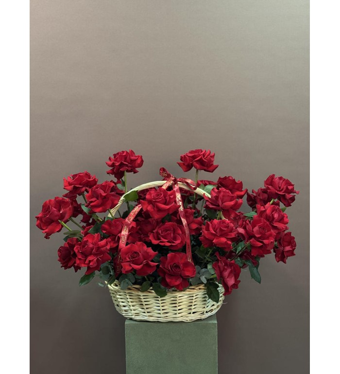 Bambu Sepette İthal Kırmızı Güller 27 Ader