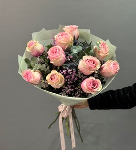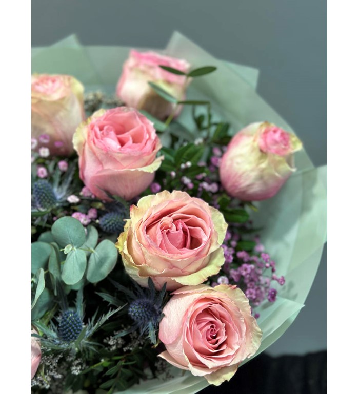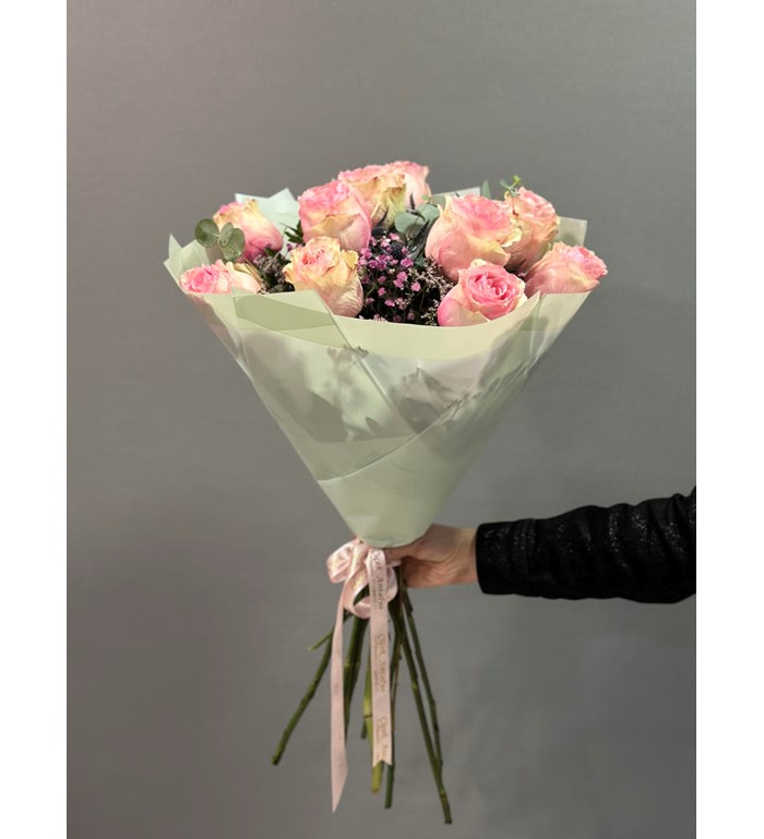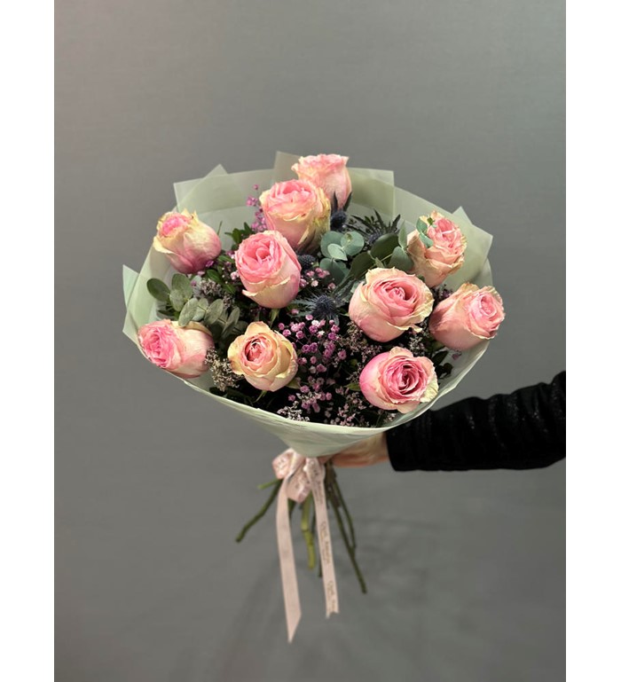 İthal 11 Pembe Kırçıllı Gül Buketi