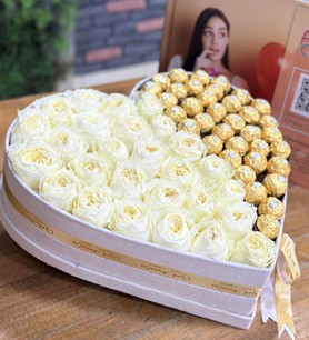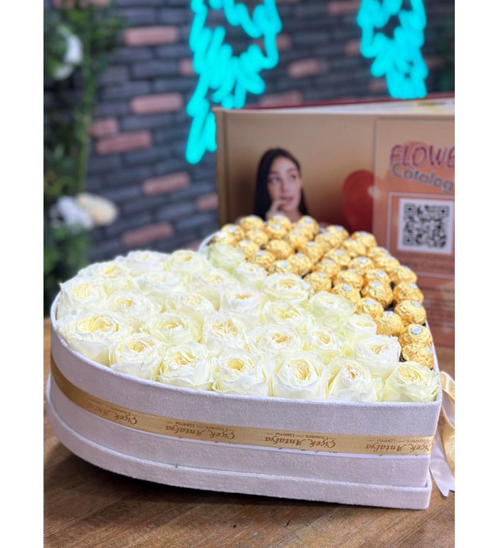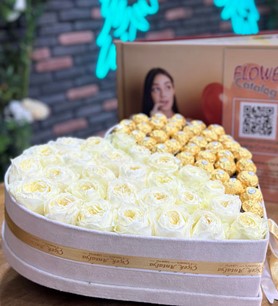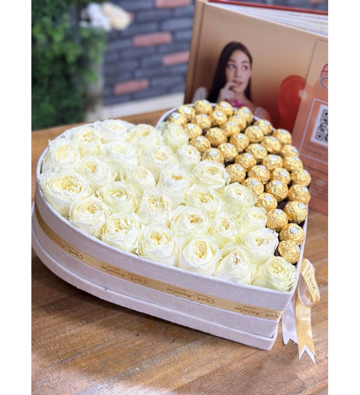 İthal Beyaz Güller ve Ferrero Rocher Çikolatalar