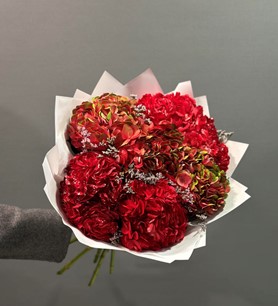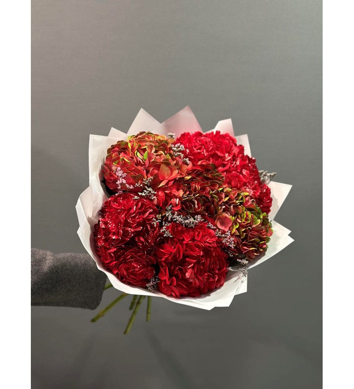 İthal Kırmızı Ortancalar Buketi