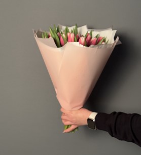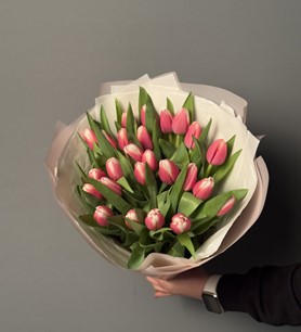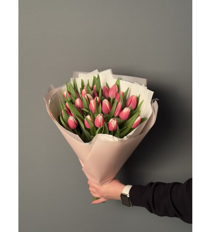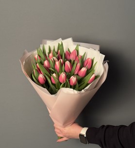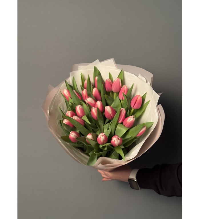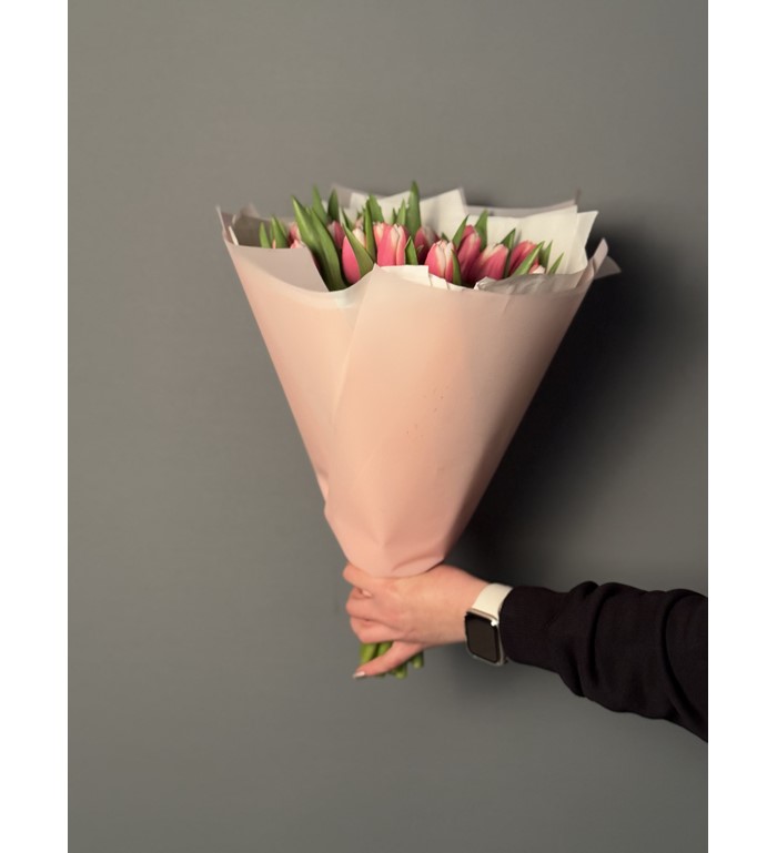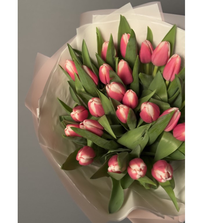 İthal Pembe Beyaz Lale buketi 25 Adet