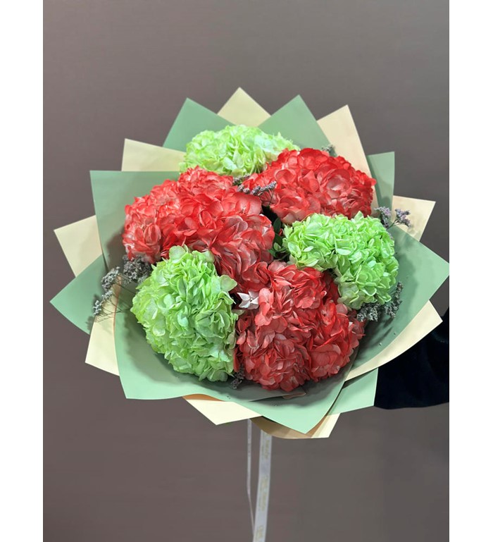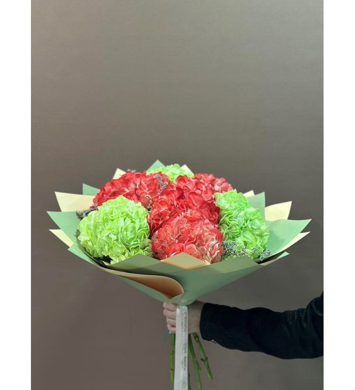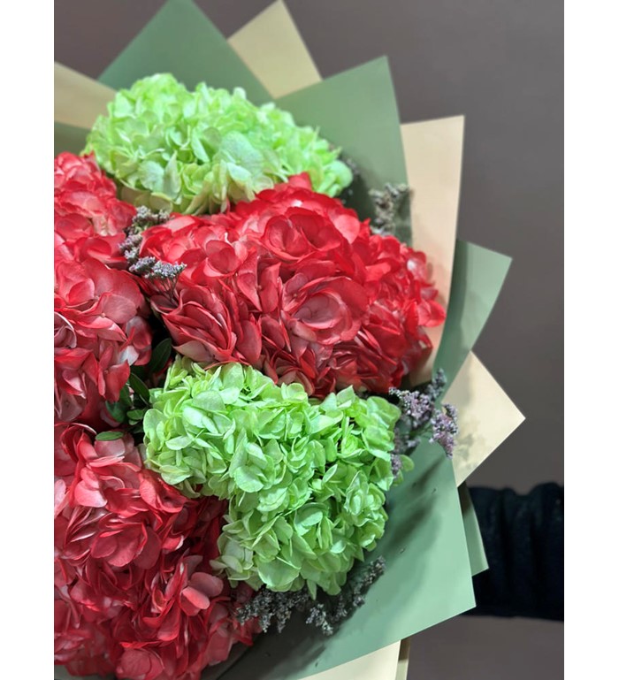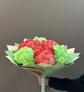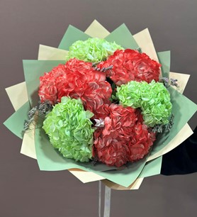 İthal Yeşil ve Kırmızı Ortancalar Buketi